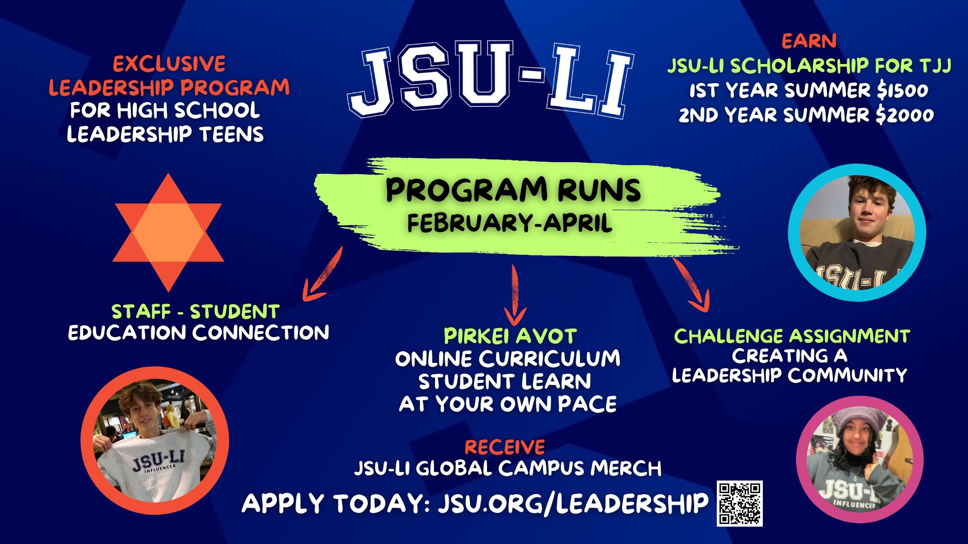 At this time, JSU-LI is offered for the West Coast Region. If you have any questions, please contact Denise Badreau Tamam, Director of Operations for JSU Global Campus at jsuwest@ncsy.org